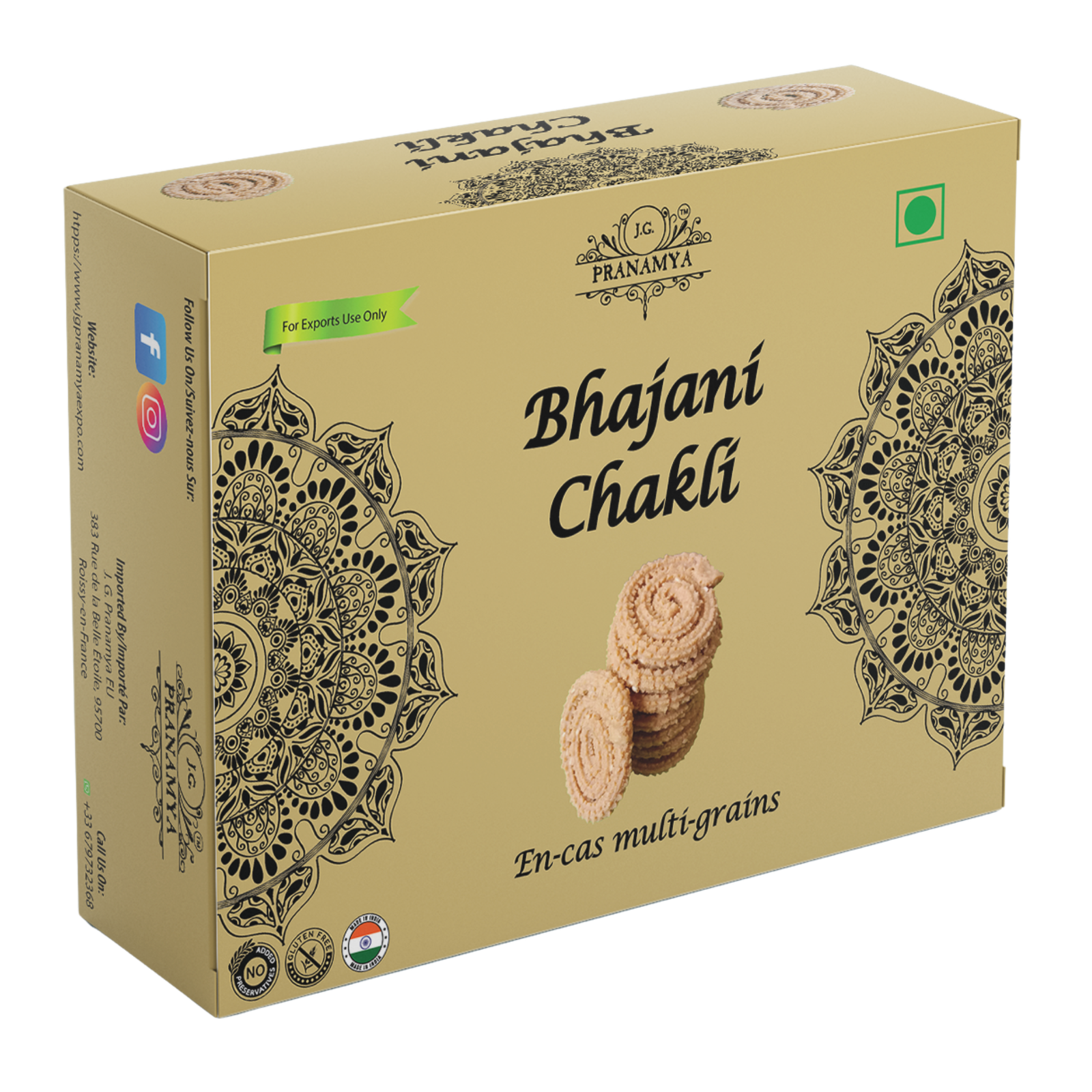 Bengal lentil Flour/Farine de Pois Chiche du Bengale 60% , Rice Bran Oil/Huile de Son de Riz 20%, Onion Paste/Pâte d’Oignon, Red Chilli Powder/Poudre de Piment Rouge, Common Salt/Sel Fin, and Black Pepper/Poivre Noir.
